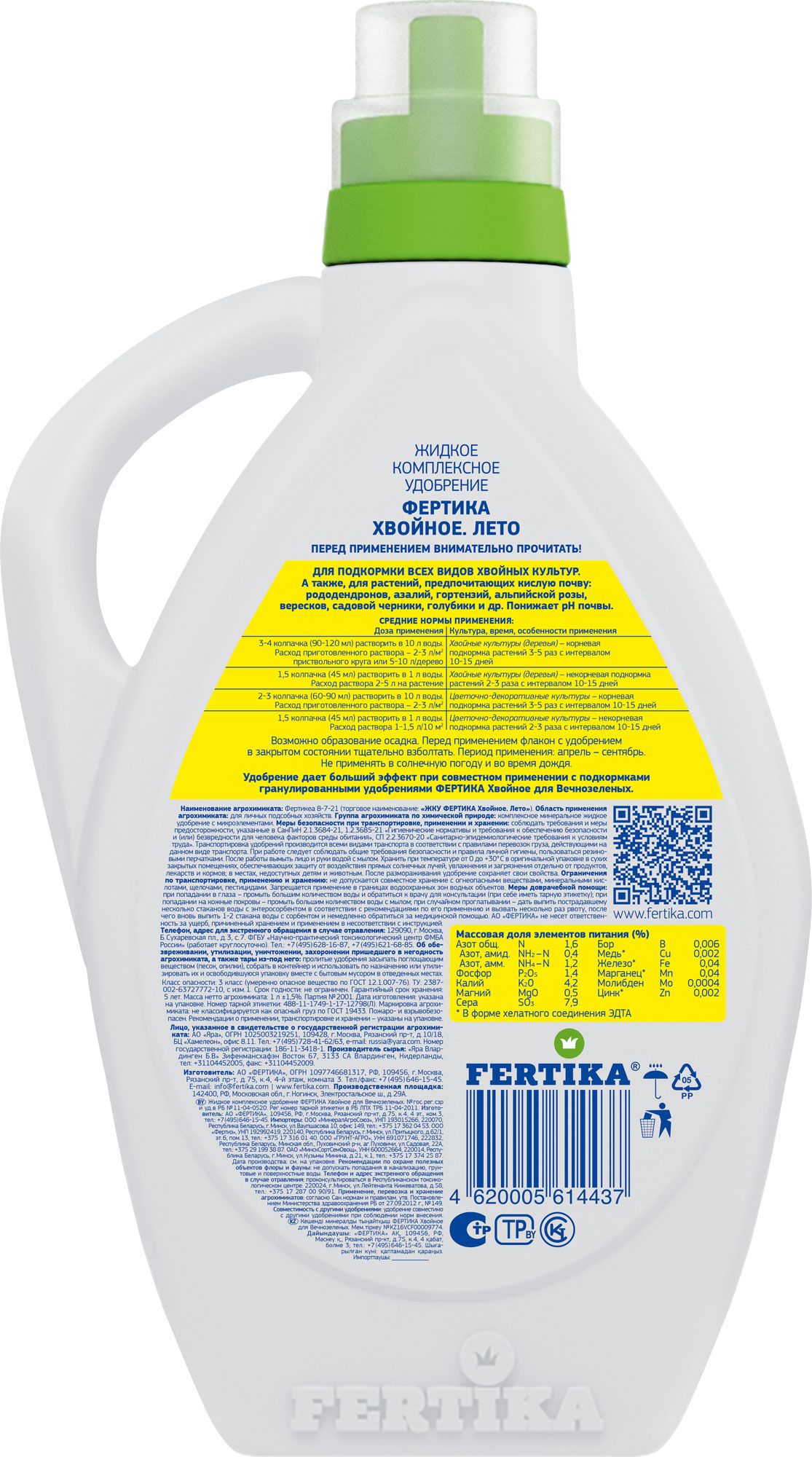 Хвойное Лето жидкое 1л от Фертика – это надежный помощник для каждого садовода и любителя хвойных растений. С его помощью вы сможете создать красивый и здоровый зеленый уголок, который будет радовать глаз на протяжении многих лет. Не упустите возможность подарить своим растениям лучшее питание и заботу, которые они заслуживают!