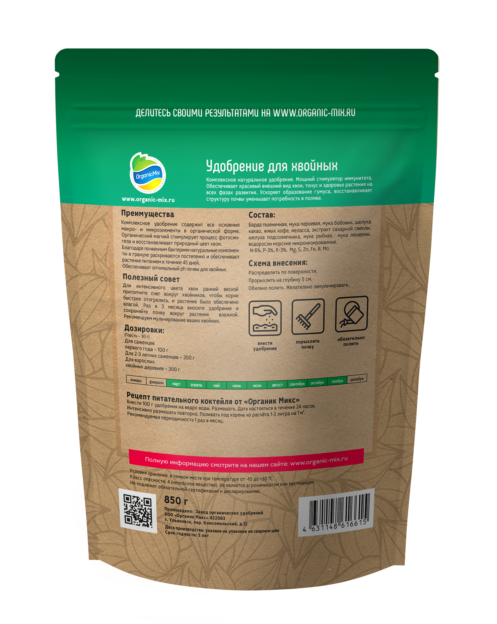 ОрганикМикс удобрение для Хвойников – это надежный помощник в уходе за вашими растениями. С его помощью вы сможете создать идеальные условия для роста и развития хвойников, наслаждаясь их красотой и зеленью на протяжении всего года. Выберите качество и заботу о природе с ОрганикМикс!