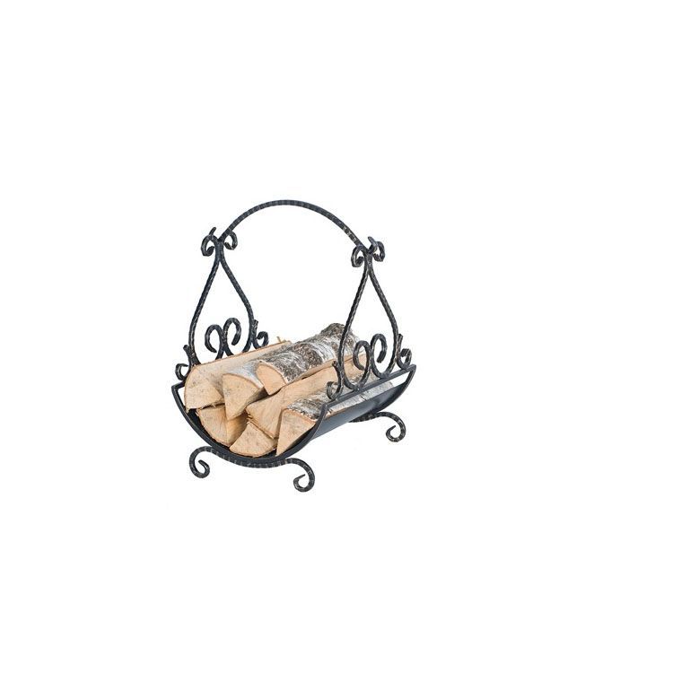 Интересная модель напольной дровницы из стали с кованым узором. Конструкция очень практична - устойчивая на гладких изящных опорах, оснащена ручкой, вместительна. С другой стороны - становится необычным декоративным элементом интерьера. Отличается рельефными прутьями с игривыми угловатыми завитками. Выполняется из прочной, устойчивой к температурным и механическим воздействиям стали, покрывается декоративным слоем в чёрном, бронзовом или серебристом оттенке, поэтому такой предмет можно вписать в разный дизайн помещений. Корзинка оснащена по бокам удобными крюками, на которые при необходимости можно повесить рабочий инструмент для ухода за очагом.