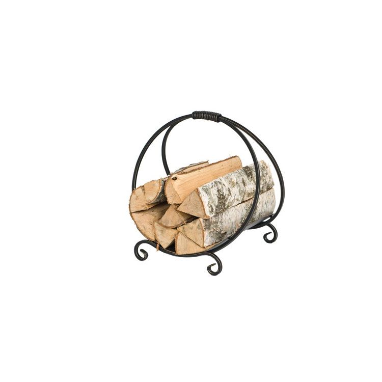 Изящная напольная дровница из прочного стального прута дополнит помещение эстетикой и станет полезным предметом у камина. В 150-й модели нет ничего лишнего - лаконичные плавные линии делают прибор утончённым и универсальным на фоне современного, классического и старинного дизайна. Дровница стоит на гладких опорах, не царапая напольного покрытия, имеет удобную ручку для переноса и состоит из 2 колец или 4 дуг, соединённых практичным днищем. Стальная основа устойчива ко всем типам воздействия, изделие покрывается декоративным слоем краски под бронзу или серебро. Такое изделие будет надёжно служить долгие годы.
