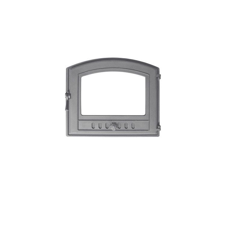 Эта герметичная топочная дверца имеет оригинальную арочную форму. Герметичность означает, что у дверцы есть прижимной механизм и что она обеспечивает самый высокий уровень изоляции. Все дверцы, представленные в этой серии, выдержаны в этом стиле. Но эта модель – самая простая и бюджетная. Она изготовлена из неокрашенного чугунного сплава, и у нее сделано только отверстие для прозрачной вставки, а самого стекла нет. Впрочем, стекло можно купить отдельно, выбрав по каталогу именно то, что было разработано для этой модели, и оно идеально подойдет по размеру. После установки стекла такая дверца обеспечит максимально возможный уровень пожарной безопасности.