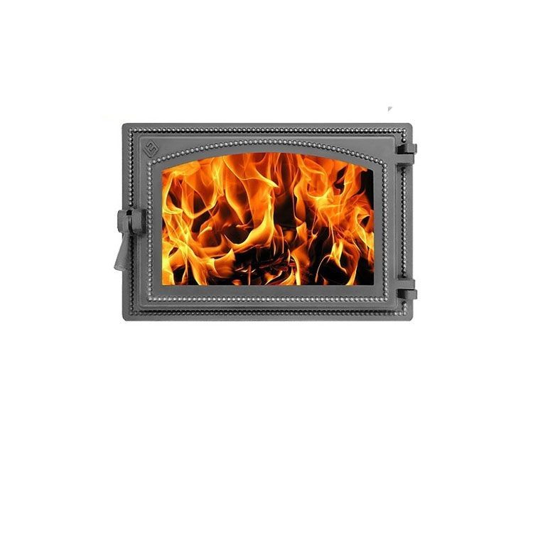 Это – удобная каминная дверца, которая обеспечивает высокий уровень пожарной безопасности, но выполняет между тем и декоративную функцию. Ее поверхность окрашена в элегантный оттенок антрацита, что позволяет использовать изделие для соответствующей модели камина. С одной стороны, такая дверца помогает создать постоянную тягу и обеспечить дополнительной тепло в помещении. С другой стороны, благодаря этой дверце, в дымоходе не скапливается сажа. А с третьей стороны, вставленное в нее прочное стекло позволяет любоваться пламенем камина. Чугунная дверца легко устанавливается на прочные и надежные крепления.