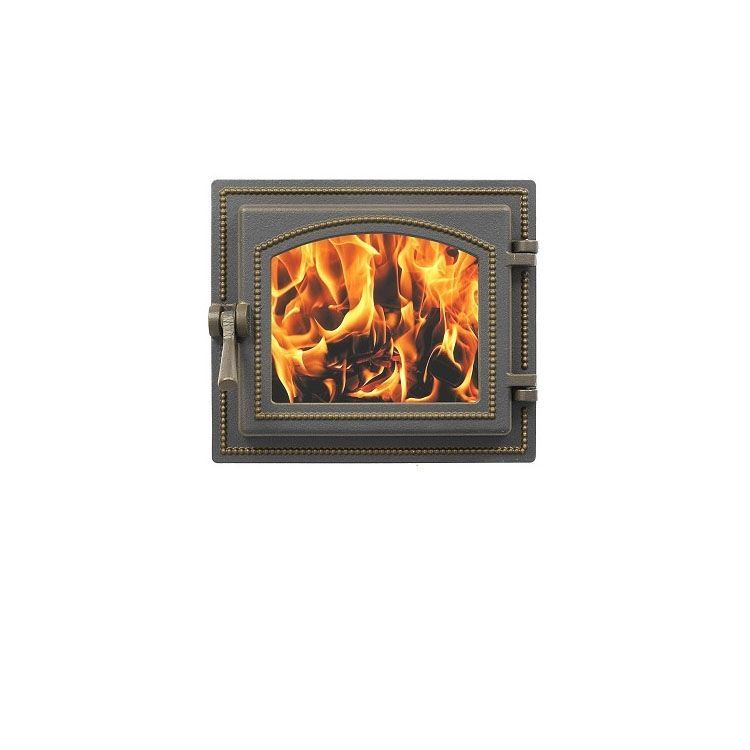 Эта топочная дверца отличается простым, но эффектным дизайном, в котором выпуклые элементы рисунка подчеркнуты бронзовым оттенком. Как и все остальные топочные дверцы, изделие в основном призвано обеспечить доступ к топке – например, для того, чтобы проверить ее состояние ли загрузить дрова. В то же время закрытая дверца при работающем камине дает возможность значительно повысить уровень пожарной безопасности, не отказываясь при этом от любования пламенем – модель снабжена прозрачной вставкой, которая дает возможность создать по-настоящему теплую атмосферу. Причем тепло будет в самом прямом смысле слова – закрытая дверца повышает температуру внутри системы, а вскоре и в комнате становится теплее.