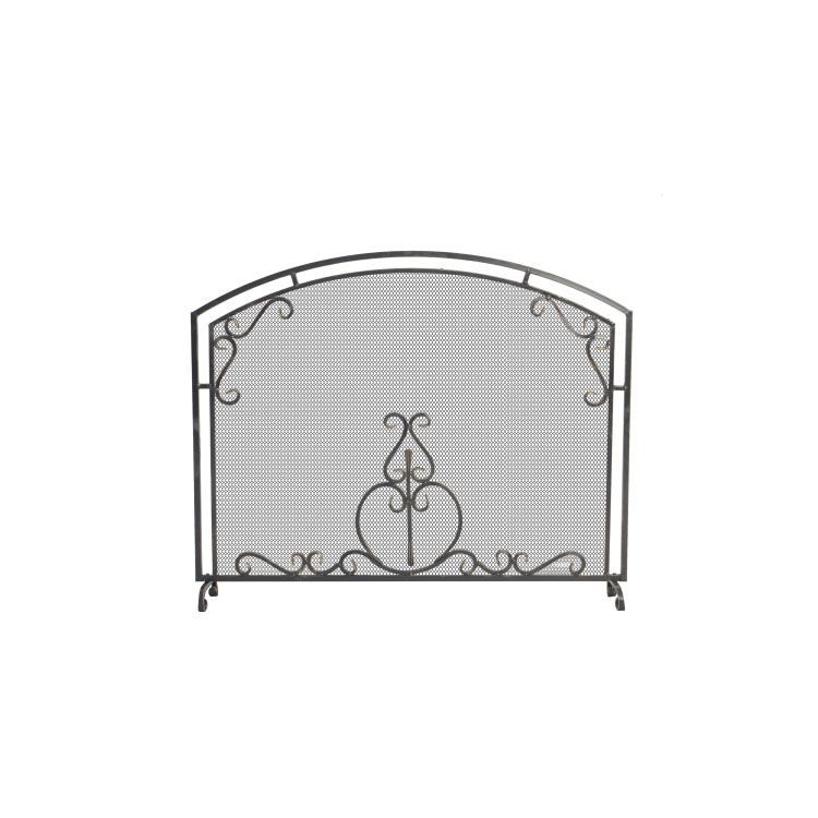 Защитный стальной экран для камина с тонкой решёткой и декоративными вензелями станет эффектным элементом интерьера. Одностворчатая конструкция естественной формы ограждает помещение от искр и пламени, интересно дополняя комнату. В деликатном узоре нет ничего лишнего, поэтому экран смотрится легко и опрятно. Решётка защищена от деформации, покрывается нетоксичной термостойкой краской в серебряном, бронзовом и строго чёрном оттенках. Ширма устанавливается на устойчивых перпендикулярных опорах, которые не царапают пол и обеспечивают равновесие конструкции.