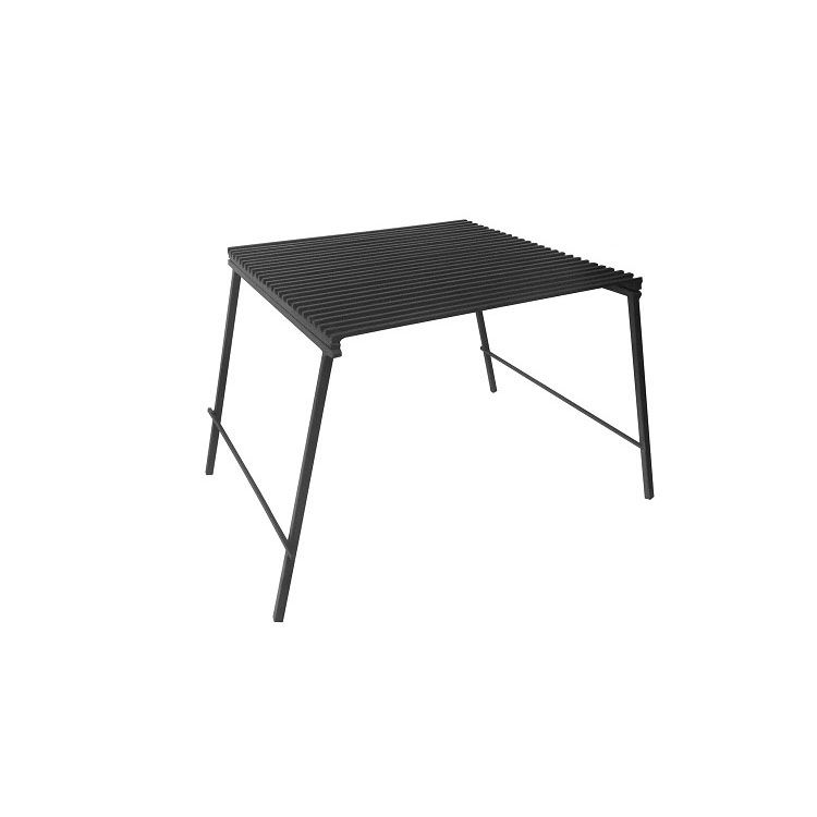 Стальная компактная решётка для приготовления пищи на открытом огне пригодится в походах, на даче и пикниках. Мангал представляет собой столоподобную конструкцию, с устойчивыми ножками. Поверхность изделия покрыта кремнийорганической эмалью, безопасной для здоровья и нетоксичной при нагревании. Изделие требует обязательного закрепления покрытия - первый обжиг от 30 минут, при котором возможны остаточные испарения растворителя. После этого конструкцию можно использовать по назначению. Параметры изделия - в пределах полуметра - оптимальны для пользования костра и углей для копчения и запекания мяса, овощей, а также разогревания продуктов.