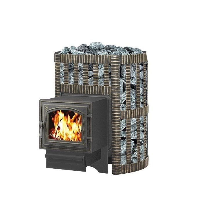 Эта эргономичная и эффективная дровяная печь-каменка рассчитана на обогрев парильного помещения объемом до 14 кубометров. Она обладает всеми преимуществами подобных устройств, включая стильный современный дизайн (и наличие кованых деталей) надежность, безопасность, экономичность, а также независимость от магистрального газо- и электроснабжения. Как и в остальных моделях серии, производитель использовал конструкционную сталь для изготовления конвекционно-вентилируемого кожух, удобного и вместительного. К числу преимуществ этой модели можно отнести и красивую топочную дверцу со вставкой из огнеупорного стекла.