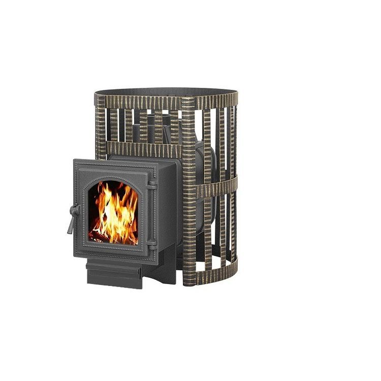 Особенностью этой модели является наличие кованых элементов – такой дизайн всегда выглядит привлекательно. Но этим ее преимущества не ограничиваются. Одним из них является наличие удобной выносной топки. А это уже и чистота в парилке, и экономия пространства, и возможность добиться повышенной безопасности при эксплуатации печи. Кроме того, к числу ее достоинств относится использование только самых качественных материалов для изготовления топки и кожуха. Наконец, стоит упомянуть хорошие показатели тепловой мощности и теплоотдачи, обеспечивающие обогрев парилки объемом до 18 кубометров.