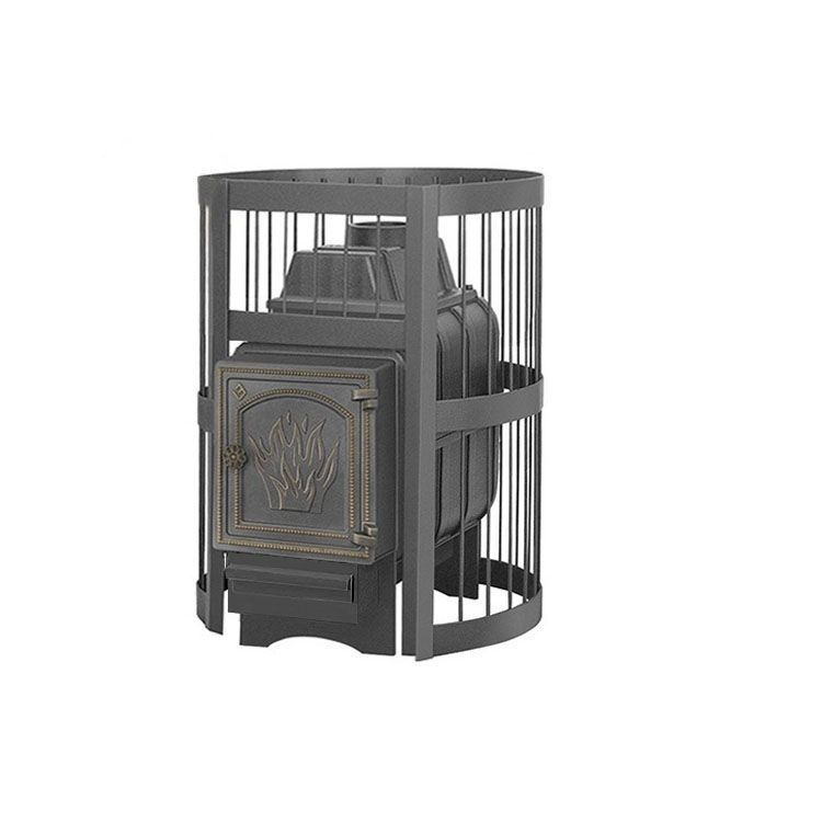 Эта дровяная печь-каменка рассчитана на обогрев парильного помещения объемом до 18 кубометров. Ее топка состоит из трех элементов, отлитых из чугуна и надежно зафиксированных с помощью болтовых соединений. Для герметизации стыков производитель использовал качественный керамический шнур, выдерживающий ультравысокие температуры. Особенностью модели является необычный, но при этом очень вместительный конвекционно-вентилируемый кожух, изготовленный из металлической полосы, на которую нанесена краска, устойчивая к высоким температурам. Наличие выносной топки не предусмотрено.