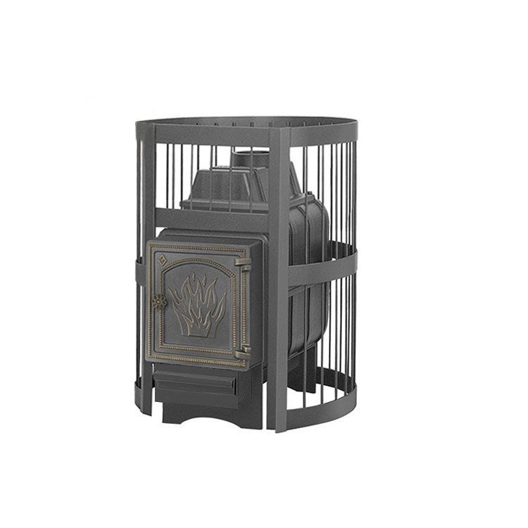 В этой модели дровяной печи-каменки не предусмотрен вынос топки. У такого решения есть свои преимущества – например, снижаются затраты на изоляцию помещения. А некоторым потребителям просто удобнее загружать дрова непосредственно из парилки. В целом модель обладает хорошей тепловой мощностью. Она рассчитана на обогрев парильного помещения объемом до 24 кубометров. Ее топка состоит из трех элементов, отлитых из чугуна и надежно зафиксированных с помощью болтовых соединений. Стыки герметичны, для них используется керамический шнур, рассчитанный на высокие температуры.