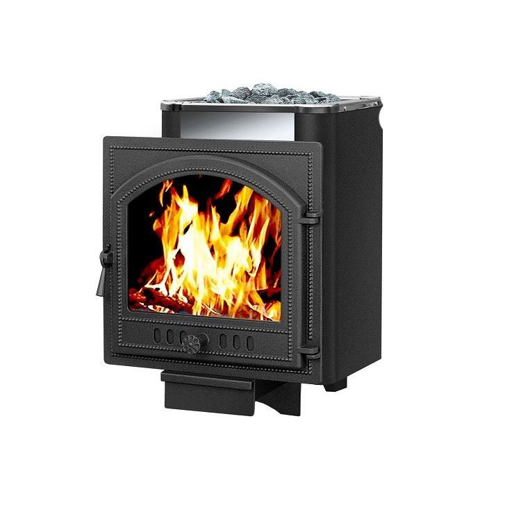 Современная банная печь имеет стильный дизайн и станет прекрасным элементом декора в сауне или русской бане. Топится печь из смежного помещения, при работе обеспечивает горячий воздух нужной температуры и мягкий пар. Модель не занимает много места, имеет компактные размеры. Печь оснащена герметичной топкой с уплотненной дверцей, в которую встроено жаропрочное стекло. Каменка изделия вмешает камни с большим весом. Она быстро прогревает и равномерно прогревает камни, поддерживая нужную температуру в парной. Модель безопасна в применении, высокие технические характеристики позволяют использовать чугунную печь более 30 лет.
