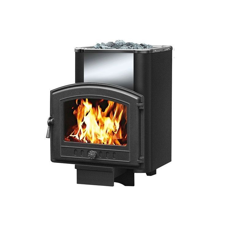 Эта модель представляет собой классическую чугунную печь для бани с выносной топкой. Она рассчитана на обогрев помещения парной объемом до 18 кубометров. К числу основных преимуществ этой модели относятся высокие показатели тепловой мощности и возможность загружать большое количество камней. Они находятся в вентилируемой каменке, где прогреваются со всех сторон до высокой температуры. Прохождение воздуха через эти камни позволяет быстро нагревать помещение и поддерживать в нем стабильную температуру. Конструкция с надежным болтовым соединением и жаропрочным шнуром на стыках обеспечивает безопасность при эксплуатации.