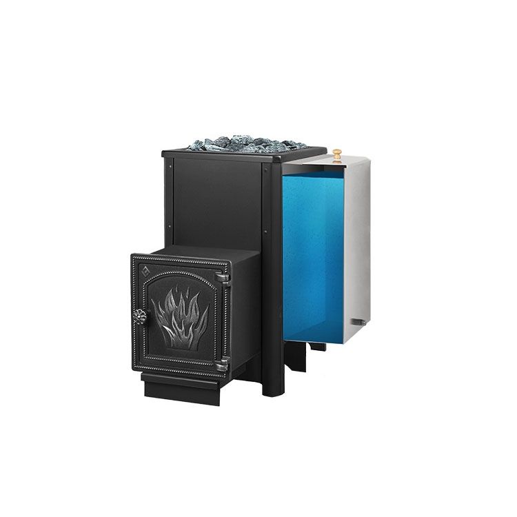 Надежная и эргономичная дровяная печь-каменка в этом случае обладает расширенной функциональностью. С одной стороны, она предназначена для отопления помещения объемом в 24 кубометра. С другой стороны, она может нагревать воду для бытовых нужд. Для этого в ее комплектацию входит бак объемом 40 литров. Его можно устанавливать как с правой, так и с левой стороны, там предусмотрены надежные навесные крепежные элементы. Во всем остальном эта печь обладает теми же эксплуатационными характеристиками, которые характерны для других моделей линейки – хорошей теплоотдачей и низким расходом топлива.
