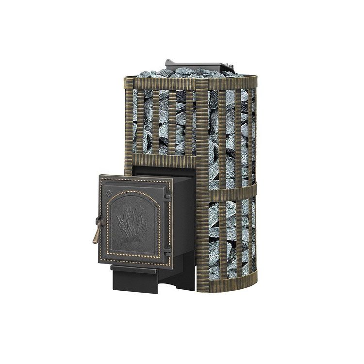 Модель предназначается для сухих и влажных саун, русских горячих бань. Конструкция печи достаточно прочна, имеет топочный тоннель для отапливания из соседнего помещения. Все детали изделия очень прочно соединены между собой крепкими болтами. Диаметр дымохода составляет 115 мм. Высота модели рассчитана на комфортное использование. В рабочем процессе печь образует горячий пар нужной температуры. Отличительная особенность изделия – закрытая каменка, изготовленная из жаропрочного чугунного сплава. Конструкция печи обеспечивает быстрое нагревание камней внутри. Срок службы изделия – более 30 лет.