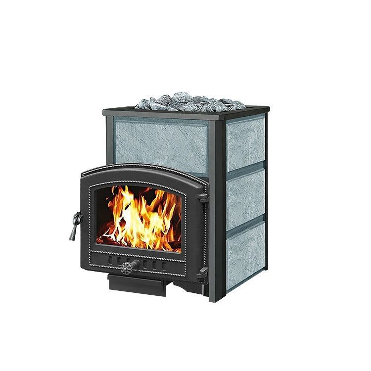 Модель данной печи имеет компактные размеры, подходит для русских бань и финских саун. Печь имеет облицовку из талькохлорида и служит прекрасным декоративным элементом в общем интерьере помещения. Устанавливается около парной, отапливает с помощью выносного тоннеля. Простая конструкция печи включает герметичную топку с плотной дверцей, конвекционный кожух, вентилируемую каменку. Предназначена для вмещения большого веса камней и их равномерного прогревания до высокой температуры. Банная печь проста в применении, безопасна в эксплуатации. Срок службы изделия составляет более 30 лет.