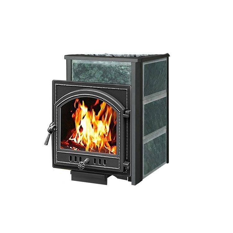 Банная печь имеет качественную облицовку из натурального горного материала змеевика. Конструкция печи применяется для образования горячего пара в русских банях и финских саунах. Изделие изготовлено из прочного чугуна, имеет герметичную топку, конвекционный кожух, выносной тоннель. Топится печь из смежного с парной бокса. Изделие обладает компактными размерами и унифицированным дизайном, отлично вписывается в любой интерьер помещения бани. Печь безопасна в эксплуатации, не требует сложного обслуживания, удобна в применении. Срок эксплуатации банной печи превышает 30 лет.