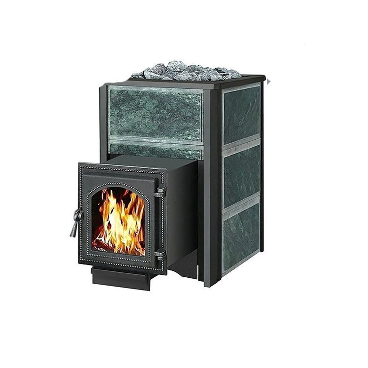 Данная модель банной печи имеет качественную облицовку из горной породы змеевик. Изделие служит не только мощным парогенератором, но и прекрасным декоративным элементом в интерьере русской бани или финской сауны. Банная печь устанавливается в смежном с парной боксе. Конструкция имеет конвекционный кожух с термопокрытием, выносной тоннель, герметичную топку, вместительную каменку. Все детали банной печи надежно соединены прочными болтами. Печь изготовлена из жаропрочного чугуна, выдерживает перепад температуры и сильный жар. Срок службы модели банной печи составляет 30 лет.