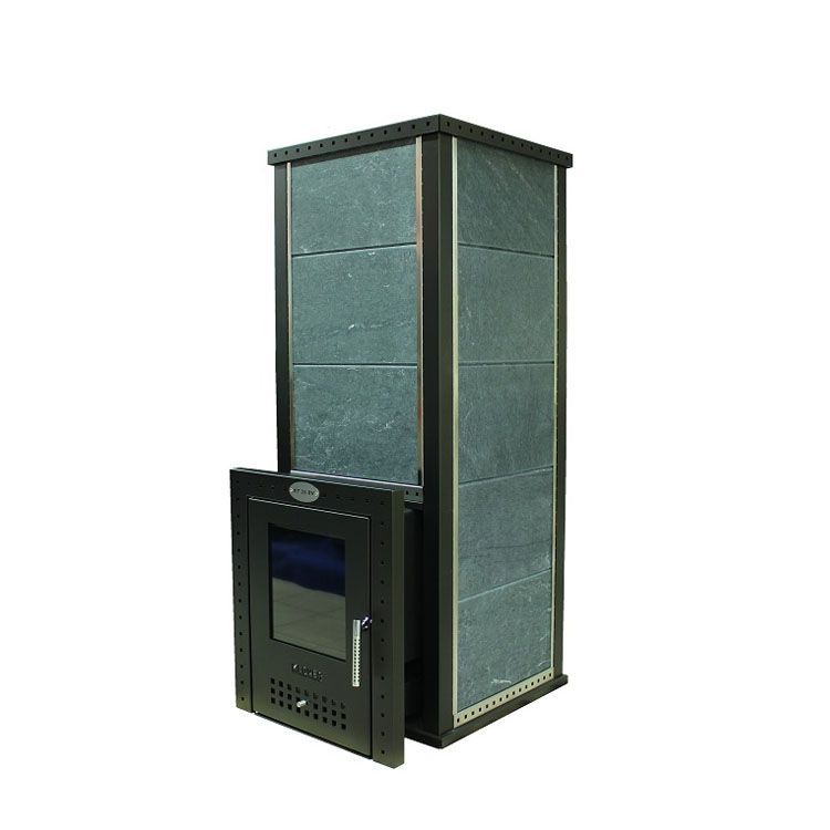 Эта модель дровяной печи для русской бани отличается от других увеличенным отсеком для камня, что позволяет лучше аккумулировать тепло. К числу преимуществ модели относятся надежная топка, изготовленная из жаропрочного стального сплава, а также современный дизайн печи с каменной облицовкой. Помимо чисто декоративных свойств, такие камни (а в зависимости от выбранной комплектации это могут быть серпентинит, жадеит или талькомагнезит) отличаются хорошей теплоемкостью, которая позволяет равномерно прогревать помещение объемом до 22 куб.м, не пересушивая при этом воздух. Печь также оснащена емкостями для ароматерапии - это еще одно ее преимущество.