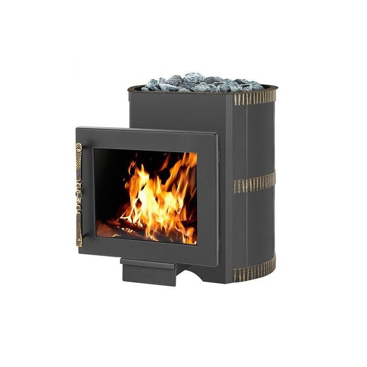 Это универсальная печь для бани, рассчитанная на объем парильного отделения до 18 кубометров. Она отличается хорошими показателями тепловой мощности, может обеспечивать равномерный прогрев в течение длительного времени. Но главная ее особенность – наличие топочной дверцы с панорамной вставкой из жаропрочного стекла. Это позволяет, сидя в помещении, любоваться игрой пламени – как в настоящем камине. Кожух модели изготовлен из конструкционной стали. Детали, на которые приходится наибольшая нагрузка, отлиты из чугуна, что позволяет избежать деформации и уязвимости, созданной сварными швами.