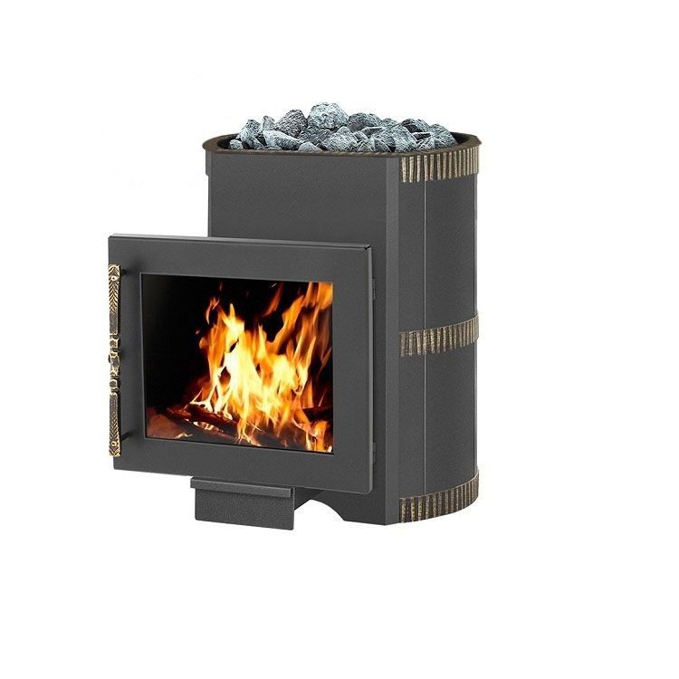 Главное особенностью этой печи является топочная дверца с панорамным огнеупорным стеклом. Оно позволяет любоваться пламенем, как в настоящем камине. Но при этом стекло обладает повышенными эксплуатационными характеристиками и обеспечивает должны уровень безопасности. Тепловой мощности модели хватает для обогрева помещения объемом 24 кубометра. К числу преимуществ этой модели относится также современный эргономичный дизайн с отсутствием острых углов, удобный выдвижной зольный ящик, а также наличие выносной топки, что позволяет загружать дрова из смежного помещения и получить больше свободного пространства в самой парилке.