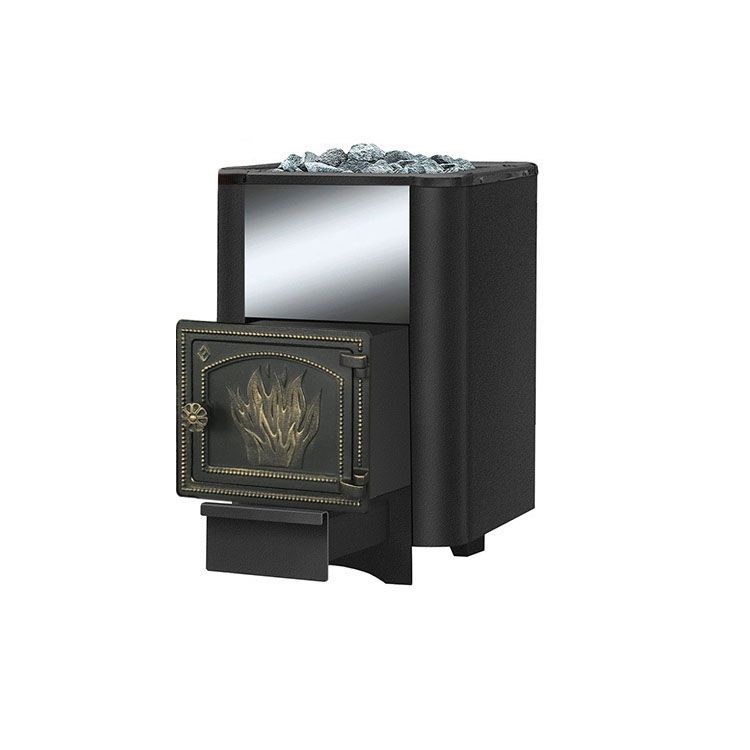 Эта модель предназначена для обогрева парильного отделения объемом до 14 куб.метров. Она представляет собой дровяную печь-каменку, оборудованную выносной топкой, что предполагает закладку дров из смежного помещения. Корпус модели изготовлен из конструкционной стали, которая может выдерживать высокие температуры в течение длительного времени. В то же время те элементы, которые подвержены наибольшим нагрузкам, делаются из чугуна (это, например, зуб-отбойник, колосниковая решетка, глухая топочная дверца). К числу преимуществ этой модели относятся также равномерное распределение тепла, удобная очистка золы и длительный срок службы – не менее 10 лет.