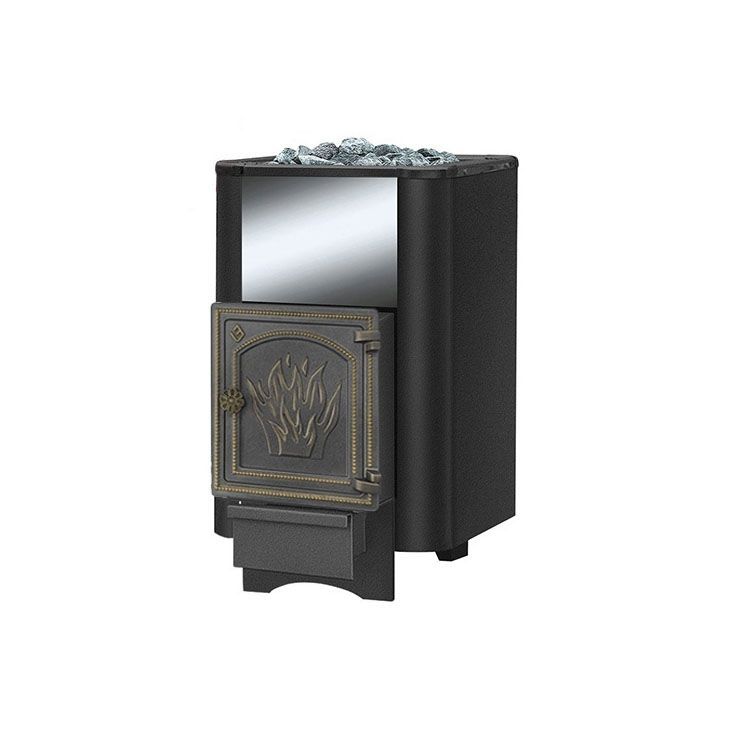 Эта универсальная модель печи-каменки, работающей на твердом топливе. Ее возможности стандартны, она предназначена для обогрева парильного помещения объемом до 18 куб.м. При этом выносная топка здесь не предусмотрено. Зато это дает целый ряд преимуществ. В частности, это более простой монтаж, что позволяет уменьшить единовременные расходы. Стоит упомянуть также отсутствие теплопотерь и более простую регулировку температуры, которая производится прямо из парилки. Печь сделана из конструкционной стали, устойчивой к высоким температурам, но ряд элементов – из чугуна, выдерживающего более высокие нагрузки.