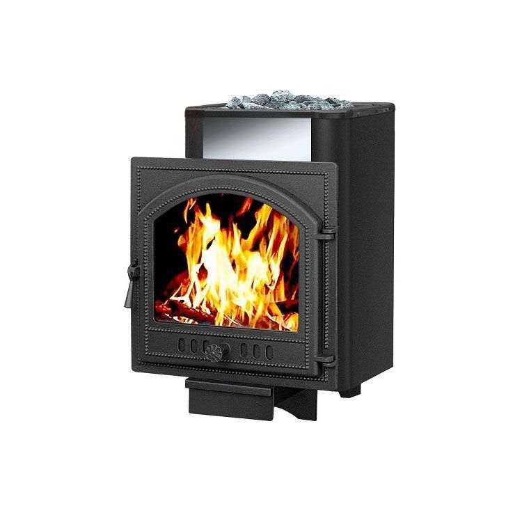 Эта модель с конструкционной точки зрения представляет собой классическую дровяную печь-каменку, оборудованную выносной топкой, которая позволяет закладывать дрова из смежного помещения. Печь предназначена для обогрева парилки объемом до 24 кубометров. Ее корпус сделан из прочной и долговечной стали, а наиболее подверженные воздействию высоких температур элементы отлиты из чугуна. К числу особенностей этой модели стоит отнести увеличенную топочную дверцу с панорамным огнеупорным стеклом, через которое можно любоваться ярким пламенем. Срок службы этой модели составляет не менее 10 лет.