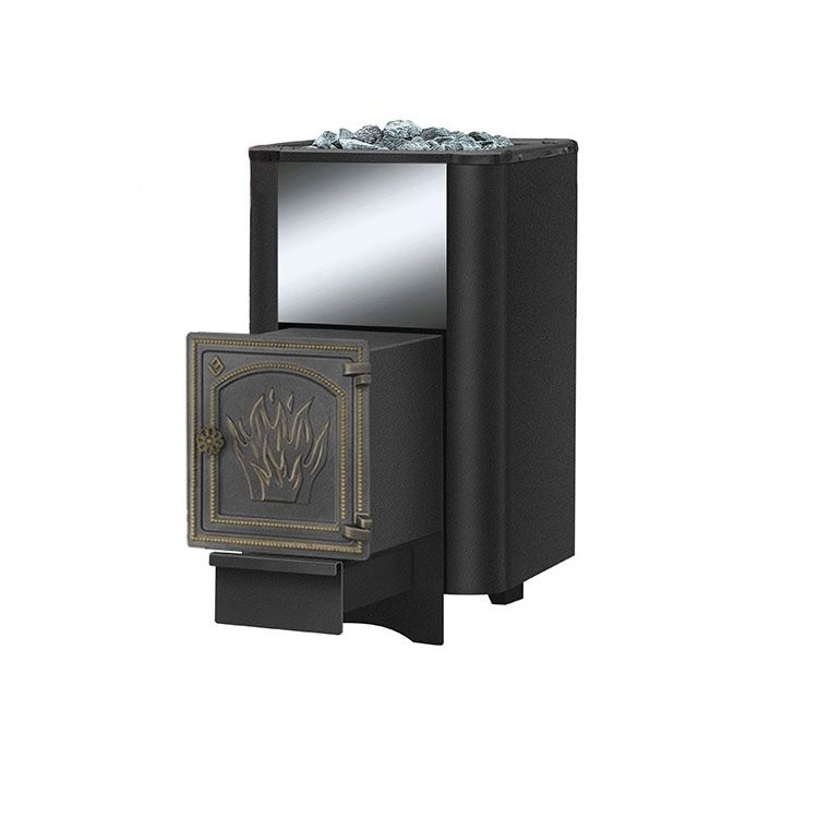 Классическая дровяная печь-каменка – главный элемент традиционной русской бани. Благодаря высокой тепловой мощности она обеспечивает обогрев помещения парилки объемом в 24 кубометра. Для конвекционно-вентилируемого кожуха, отличающегося хорошей вместительностью, была использована марка стали, устойчивой к высоким температурам. Дверца для топки, так же, как и некоторые другие элементы, подвергающиеся постоянно повышенным нагрузкам, отлита из чугуна. Он представляет собой прочный и устойчивый к нагреву сплав, считающийся наиболее подходящим для таких деталей. Срок службы этого оборудования составляет не менее 10 лет при соблюдении всех правил эксплуатации.