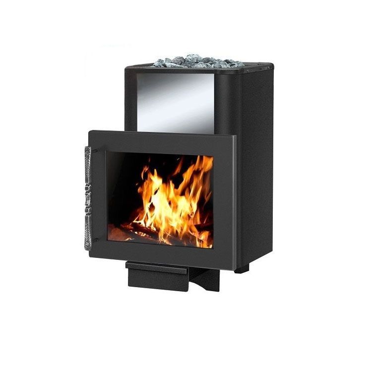 Особенность этой модели печи – ее лаконичный современный дизайн, минималистичный, но очень привлекательный. В этом стиле выдержана вся линейка, но в этом случае он сочетается с панорамным огнеупорным стеклом на топочной дверце, которое само по себе служит украшением интерьера. Эта мощная и в то же время экономичная модель обеспечивает обогрев помещения парилки объемом в 24 кубометра. Конвекционно-вентилируемый кожух модели обладает достаточно большой вместимостью. Дверца топки массивна, она изготовлена из чугуна. Этот материал, хотя и увеличивает стоимость исполнения, зато продлевает срок службы конструкции.
