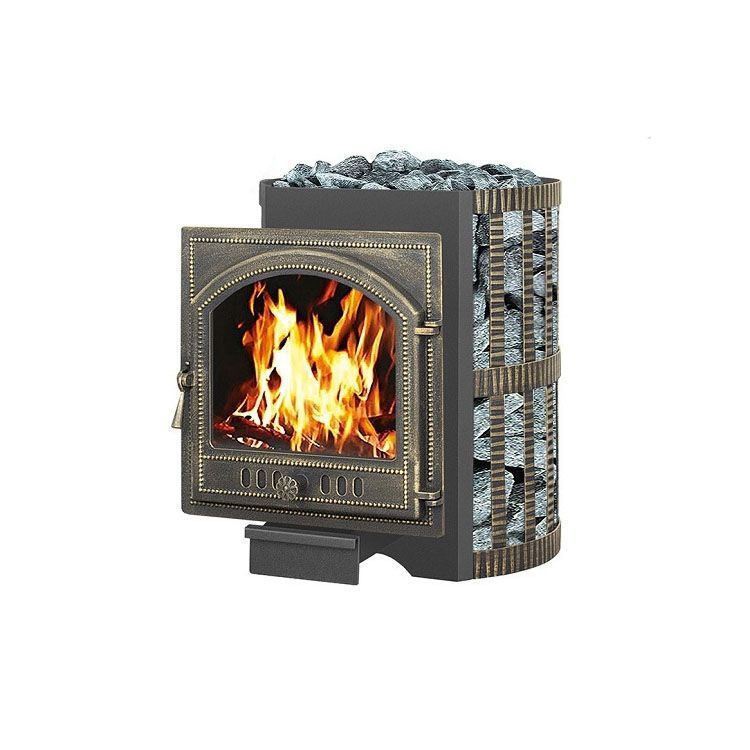 Традиционная дровяная печь-каменка – это то, о чем нужно позаботиться в первую очередь при обустройстве бани. Эта модель обладает достаточной тепловой мощность, чтобы обеспечить обогрев помещения парилки довольно большого объема (как для загородного дома). Конвекционно-вентилируемый кожух модели рассчитан на большую массу камней, что позволяет обеспечить аккумуляцию тепла и его равномерную отдачу, и изготовлен из стального сплава высокой прочности. Сплошная топочная дверца отлита из чугуна. Это надежный и долговечный сплав, придающий таким элементам устойчивость к тепловым деформациям. Срок службы печи превышает 10 лет.