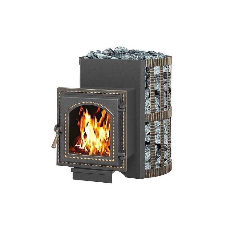 Особенностью этой модели является кованый конвекционно-вентилируемый кожух. Это практичное и эргономичное решение, но оно, к тому же, выглядит очень эффектно. Тепловая мощность этой печи позволяет обогревать помещение объемом до 18 кубометров. Кованый кожух вместителен, в него можно загрузить много камней, и это обеспечит равномерный прогрев помещения и увеличит теплоотдачу. Кроме того, на эту печь можно устанавливать бак с водой для нагрева. Кожух сделан из прочной конструкционной стали, остальные важные детали отлиты из чугуна, что позволяет избежать сварных швов и обеспечивает большую устойчивость к деформациям.