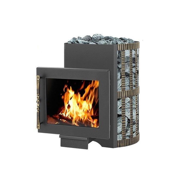 Одной из особенностей этой надежной и эргономичной дровяной печи –каменки является наличие панорамного огнеупорного стекла на топочной дверце. Это – очень красивое решение, позволяющее любоваться игрой пламени. Что касается прочих характеристик, то они также находятся на высоте. Модель обладает средней тепловой мощностью, позволяющей обеспечить обогрев помещения объемом в 18 кубометров. Рассчитанный на большой объем загрузки конвекционно-вентилируемый кожух модели должен выдерживать высокие механические и тепловые нагрузки. Он изготовлен из прочной стали. Топочная дверца отлита из чугуна. Поскольку она постоянно подвергается воздействию высоких температур, только этот сплав помогает их выдержать.