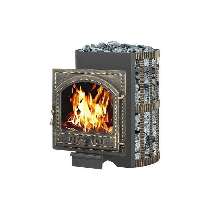 У этой модели печи-каменки есть несколько важных особенностей. Во-первых, это чугунная топочная дверца, оснащенная каминным стеклом, позволяющим любоваться пламенем. Во-вторых, это наличие кованых деталей кожуха, придающих конструкции повышенную прочность. В-третьих – наличие выносной топки. Что касается мощности, то ее хватить для того, чтобы обеспечить обогрев помещения парилки объемом в 18 кубометров. Вместительный конвекционно-вентилируемый кожух модели отвечает за высокую теплоотдачу. Топочная дверца отлита из чугуна. Это надежный и долговечный сплав, придающий таким элементам устойчивость к тепловым деформациям.