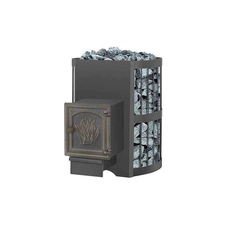 Эта модель представляет собой дровяную печь, рассчитанную относительно небольшой объем парильного отделения, до 18 кубометров. К числу ее особенностей относятся наличие вместительного конвекционно-вентилируемого кожуха, изготовленного из прочного калиброванного прута, чугунного колосника и глухой топочной дверцы из того же сплава. Из чугуна изготавливается и так называемый зуб-отбойник, который обеспечивает защиту от деформации даже при высоких температурах. Конструкцией печи предусмотрен также выдвижной зольный ящик, который позволяет максимально безопасным образом избавляться от золы.