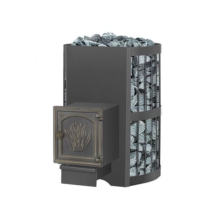 Традиционная дровяная печь-каменка модернизируется, но остается актуальной всегда. Эта модель обеспечивает обогрев помещения парилки объемом в 30 куб. метров. Конвекционно-вентилируемый кожух модели вместителен – это позволяет загрузить больше камней и аккумулировать больше тепла. А для его изготовления производитель использовал высокопрочную конструкционную сталь. В то время как топочная дверца, так же, как и некоторые другие детали вроде колосника или зуба-отстойника, отлита из чугуна. /то важно в связи с приходящимися на них высокими нагрузками. Это надежный и долговечный сплав, обеспечивающий долговечность конструкции и ее устойчивость к возможным деформациям под действием высоких температур.