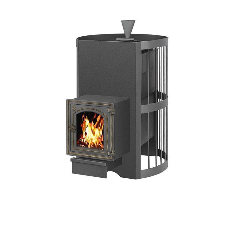 Эта модель дровяной печи для бани оснащена парогенератором. Он создает мелкодисперсный пар, который практически не повышает влажность воздуха, и поэтому лучше воспринимается организмом. В целом печь рассчитана на парильное отделение объемом до 24 кубометров. Модель отличается современным дизайном. Ее достаточно вместительный конвекционно-вентилируемый кожух представляет собой конструкцию из надежного и долговечного калиброванного прута. Модель также оснащена топочной дверцей из чугуна, снабженной окошком из стекла, устойчивого к высоким температурам. Через него можно любоваться пламенем.