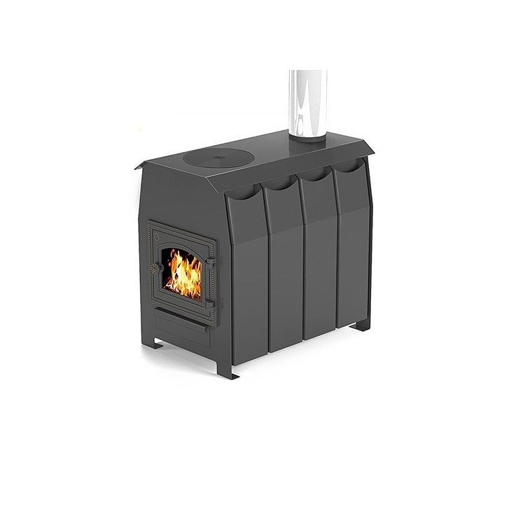 Эта модель представляет собой дровяную печь, предназначенную для обогрева помещений объемом до 200 куб. м. Она отличается хорошими показателями тепловой мощности и теплоотдачи (последняя, помимо всего прочего, обеспечивается наличием двух воздухозаборников, отвечающих за формирование конвекционных потоков и быстрый прогрев помещения). Печь также снабжена варочной поверхностью с усиленной конфоркой. Корпус сделан из жаропрочной стали, окрашенной специальной термостойкой эмалью. Колосниковая решетка и топочная дверца отлиты из чугуна. Причем дверца снабжена вставкой из жаропрочного стекла.