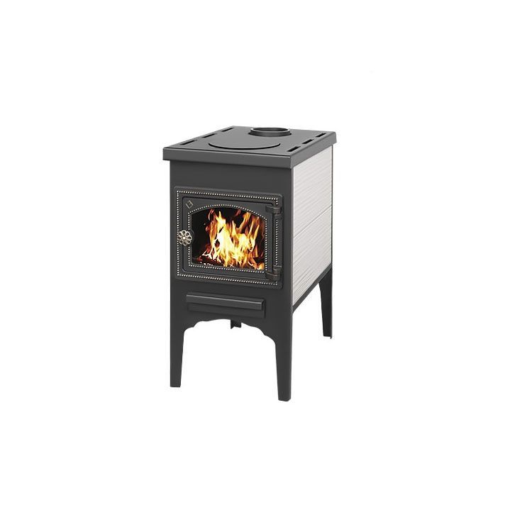 Эту небольшую модель можно использовать для отопления хозяйственных или подсобных помещений, хотя теоретически ее можно поставить и в маленьком дачном домике, не предназначенном для круглогодичного проживания. Она предназначена для обогрева помещения объемом до 100 кубометров. Но даже при таких небольших габаритах модель отличается достаточно высокой тепловой мощностью, которую можно использовать с максимальной пользой – для этого печь снабжена варочной поверхностью с одной конфоркой, предназначенной для приготовления пищи. Корпус печи сделан из прочной и устойчивой к высоким температурам стали, а дверца – из еще более надежного чугуна и снабжена огнеупорной стеклянной вставкой.