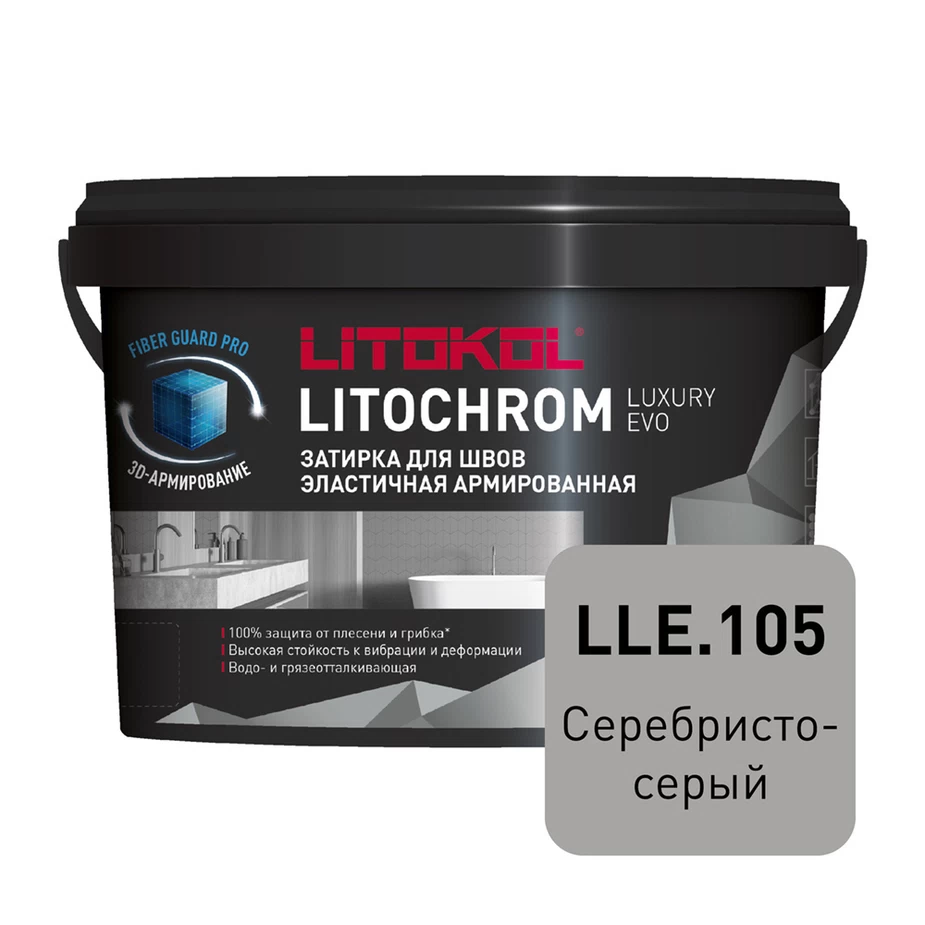 LITOCHROM LUXURY EVO — эластичная водоотталкивающая цементно-полимерная затирка с защитной системой LitoProtect® для заполнения межплиточных швов шириной 1–10 мм включительно. Смесь с пониженным водопоглощением, с повышенной